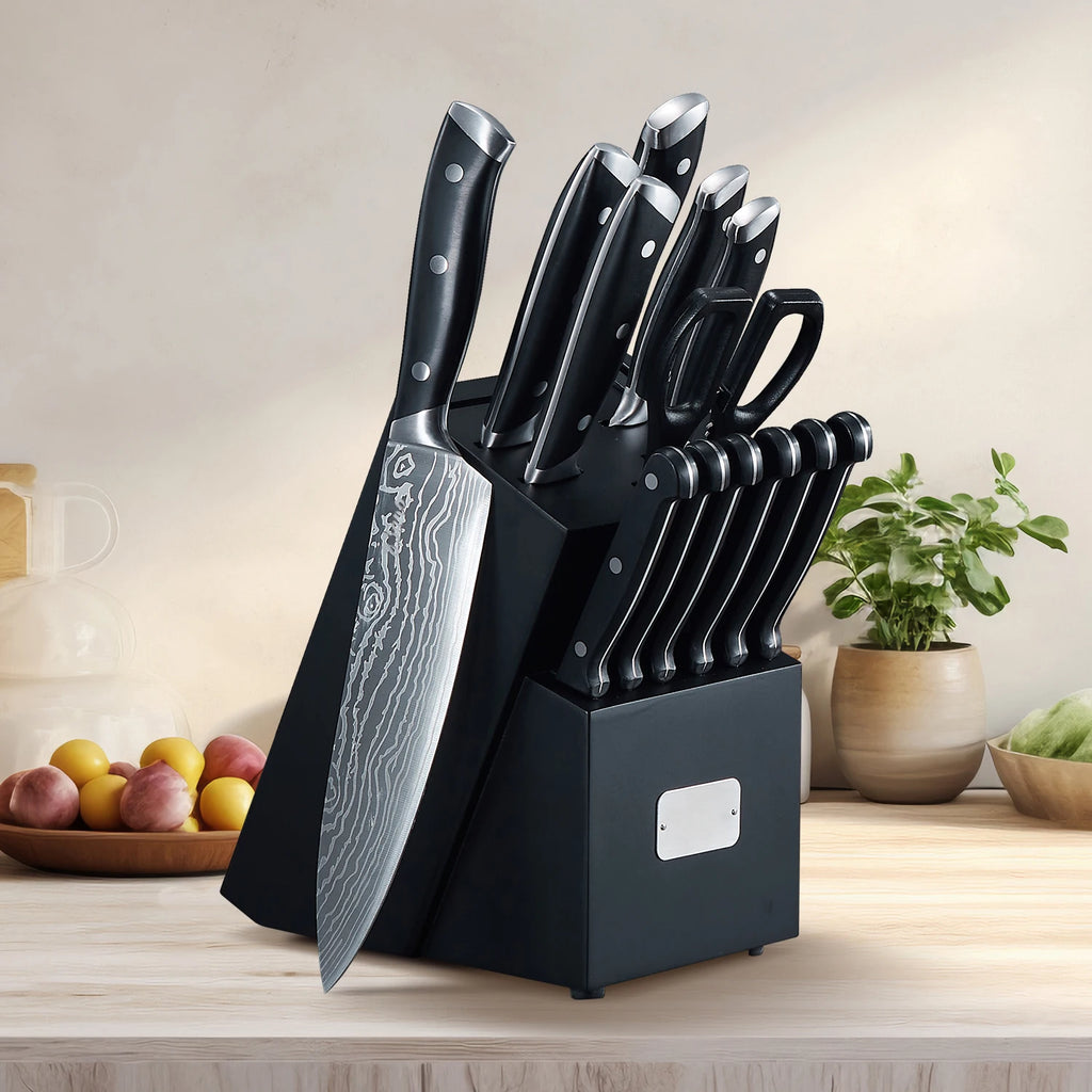 Holen Sie sich Ordnung und Stil in Ihre Küche! Bestellen Sie jetzt den Akazienholz Messerblock und bewahren Sie Ihre Messer sicher und elegant auf.
